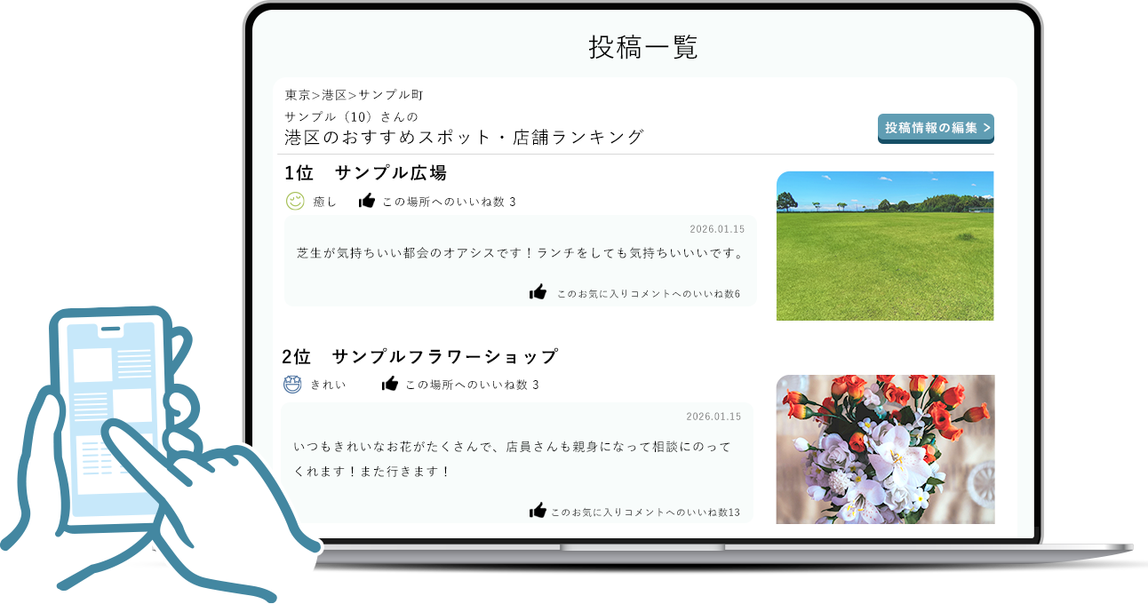 “お気に入り”を投稿することで、自分の好きなスポットや街、